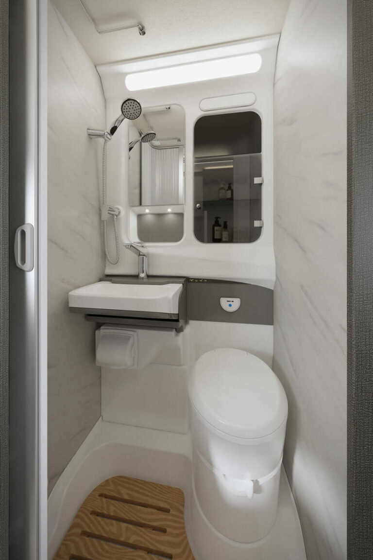 Our Swift Trekker is our largest campervan; think of it as a cross between a traditional campervan and a motorhome. All the advantages of a larger motorhome, such as an on-board toilet and shower, larger beds, and more living area, but without the extra size.